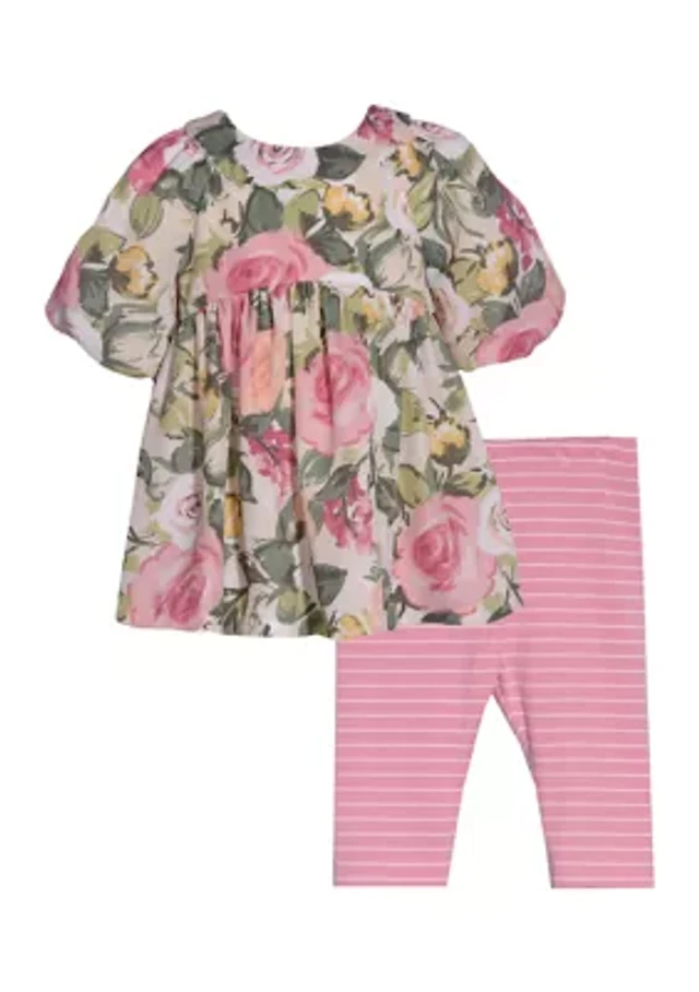 Baby Girls Puff Sleeve Floral Printed Top and Leggings Set
