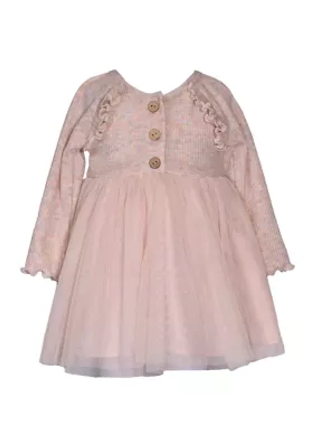 Toddler Girls Long Sleeve Mixed Media Tiered Dress