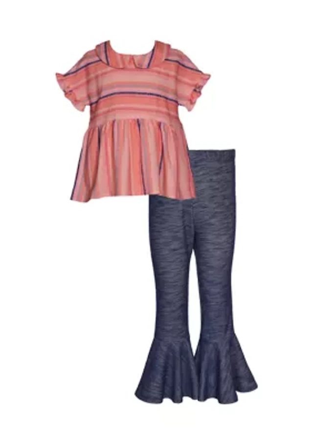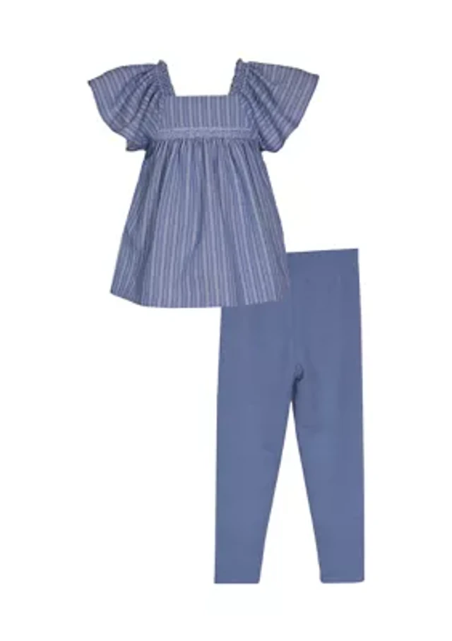 Girls 4-6x Chambray Striped Top and Paperbag Shorts Set