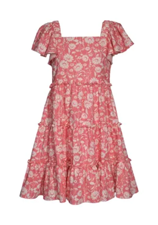 Girls 7-16 Floral Printed Tiered Dress