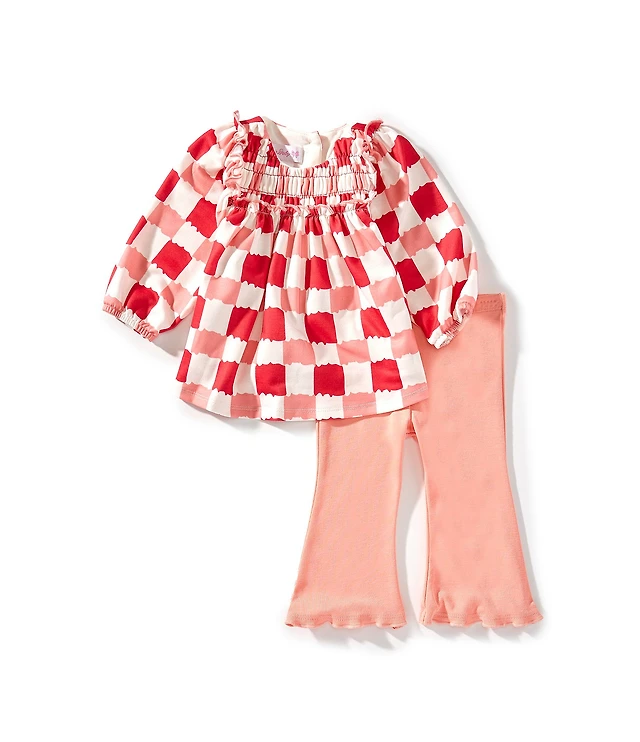 Bonnie Jean Baby Girls Long Sleeve Bow-Accented Top & Daisy Jacquard Flare-Leg Pants Set