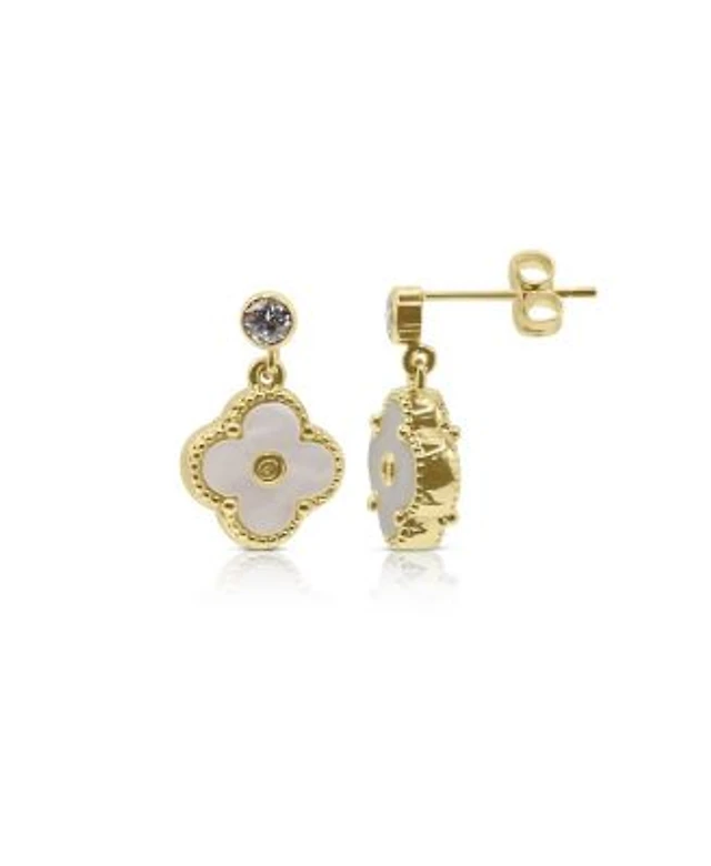 Bowood Lane Non-Tarnishing 10mm Gold Filled Mother Of Pearl Clover with Cubic Zirconia Stud Earrings