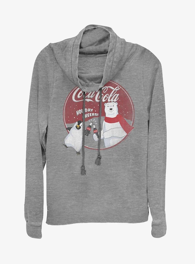 Coca Cola Holiday Cheers Bear Cowlneck Long-Sleeve Womens Top