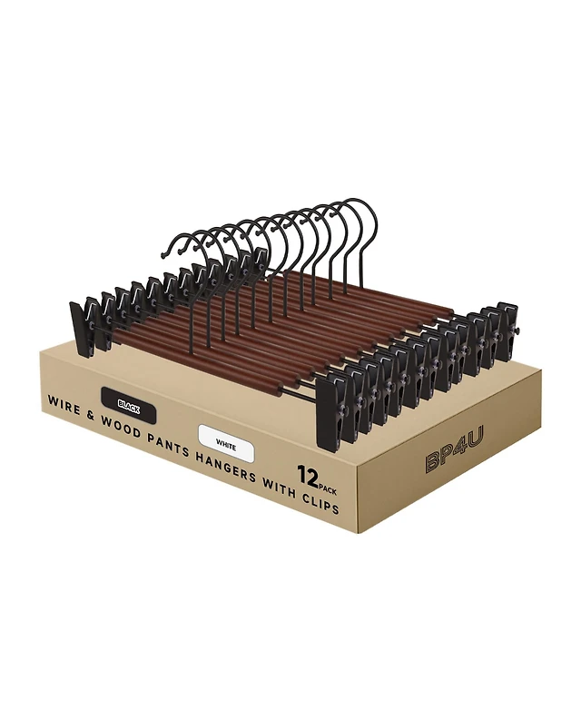 BP4U 12-Pack Wooden Pants Hangers with Adjustable Clips