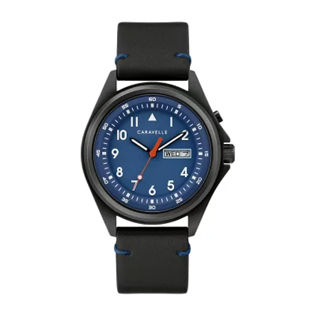 Caravelle Designed By Bulova Mens Black Leather Strap Watch 45c118
