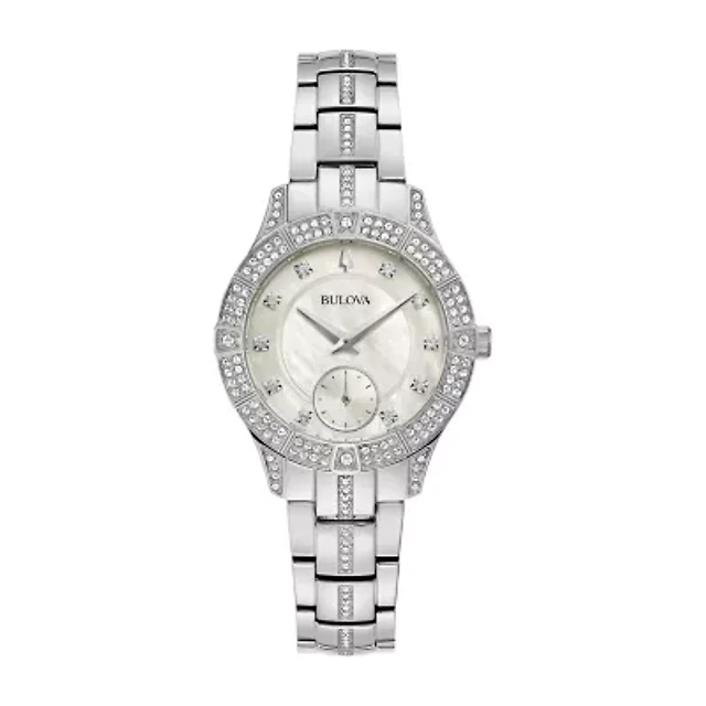 Bulova Crystal Womens Crystal Accent Silver Tone Stainless Steel Bracelet Watch 96l311