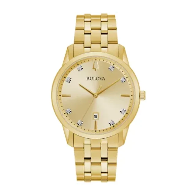 Bulova Mens Gold Tone Stainless Steel Bracelet Watch 98b375
