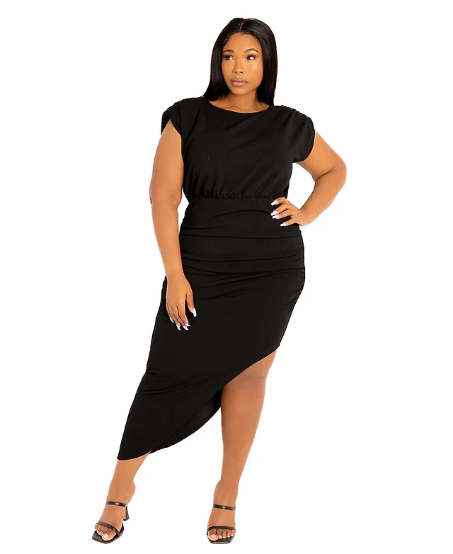 Buxom Couture Plus Ruched Fishtail Midi Dress