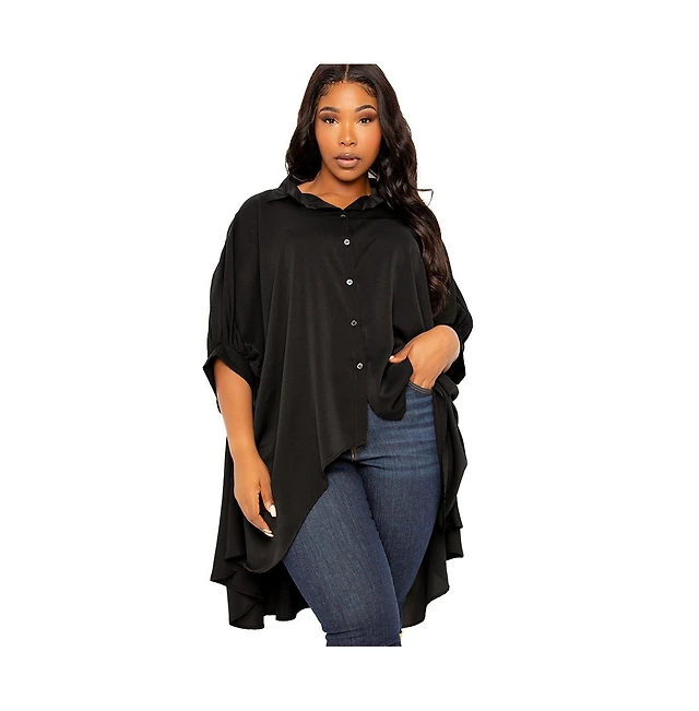 Buxom Couture Women's Plus Flowy Hi-lo Blouse