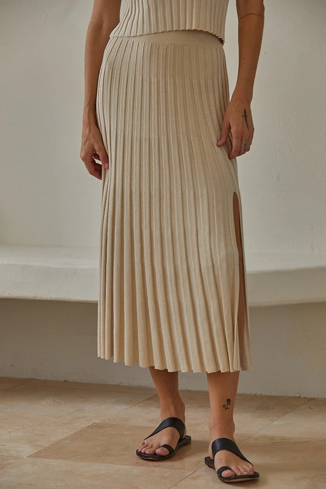 Beige Ribbed Midi Skirt