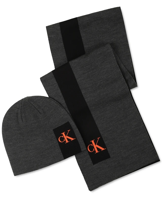 Calvin Klein Men's Monogram Buckle Reversible Leather Belt
