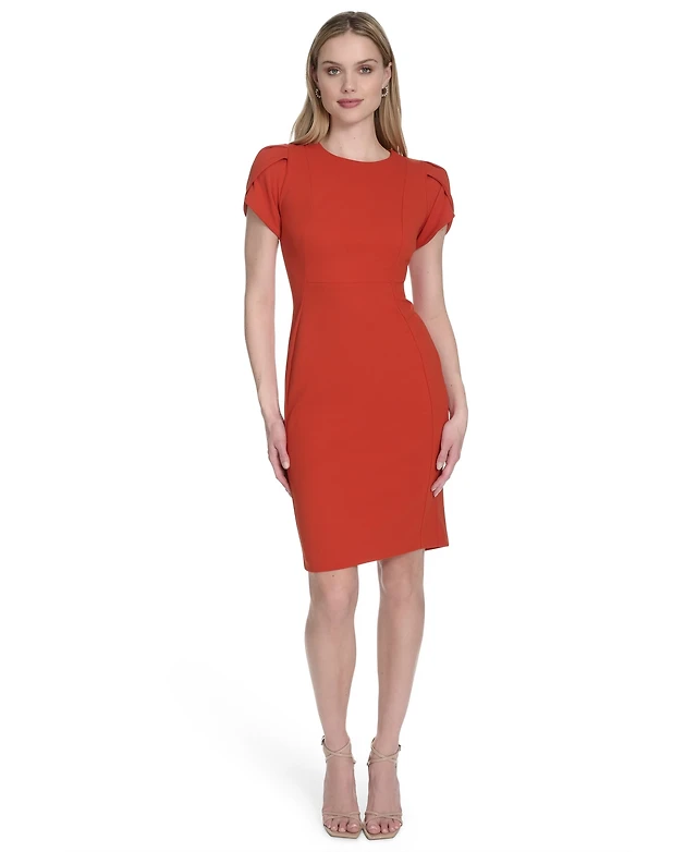 Plus Short Sleeve V-Neck Scuba Crepe Fit and Flare Dress