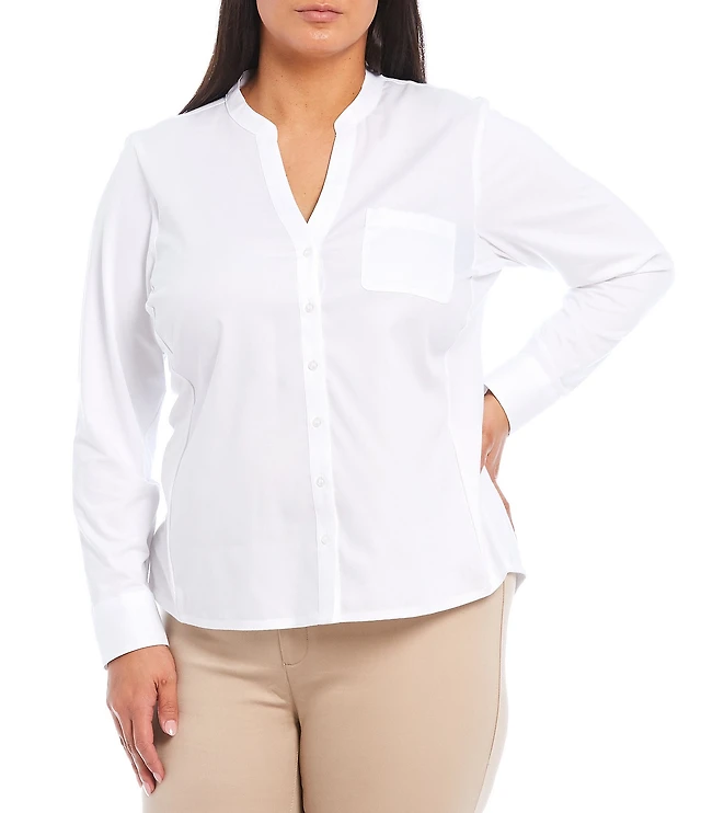 Calvin Klein Plus Size Solid Woven Crew Neck Long Sleeve Pleated Top