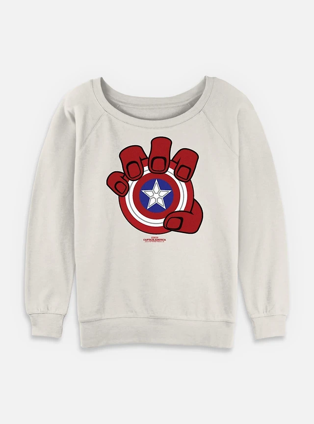Captain America: Brave New World Red Hulk Hand And Shield Womens Slouchy Sweatshirt