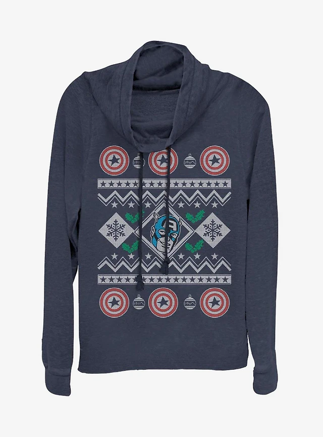Marvel Captain America Christmas Pattern Cowlneck Long-Sleeve Womens Top
