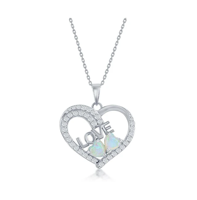 Caribbean Treasures Sterling Silver Synthetic Opal & Cz, Heart & Love Pendant