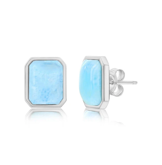 Caribbean Treasures Sterling Silver Triangle & Oval Larimar Earrings