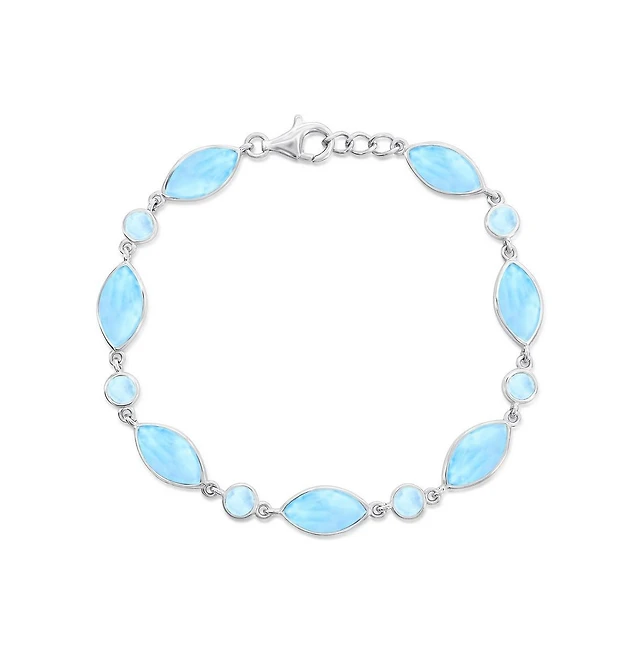 Caribbean Treasures Sterling Silver, Marquise & Round Larimar Bracelet