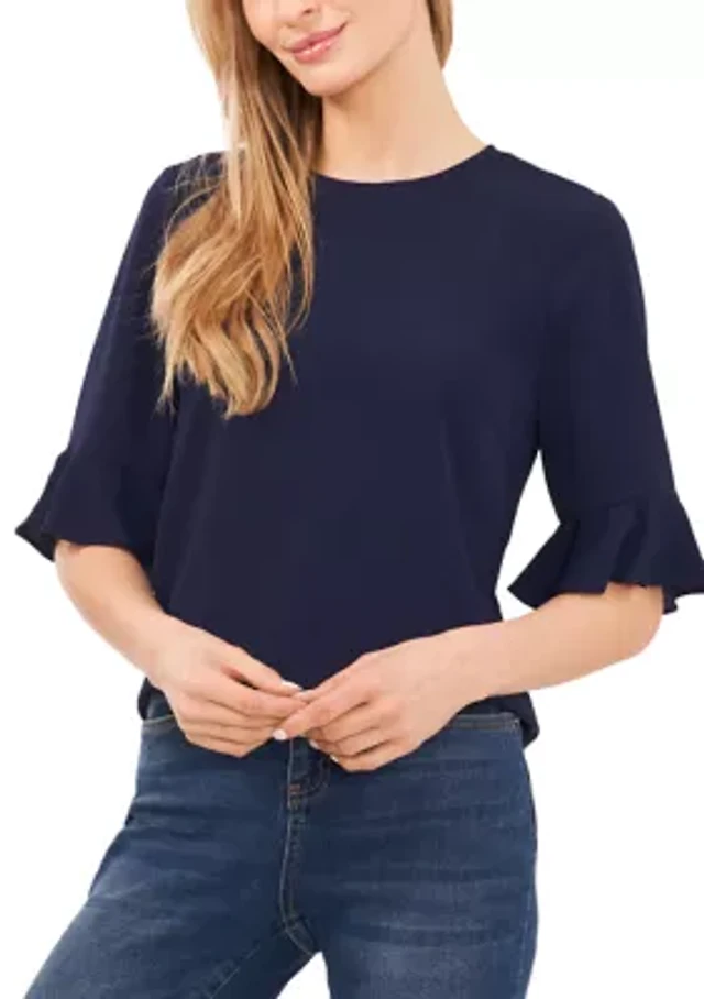 Petite Split Neck Flutter Sleeve Top