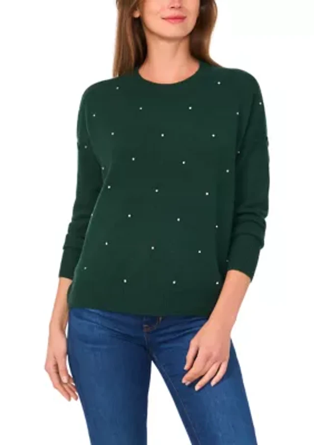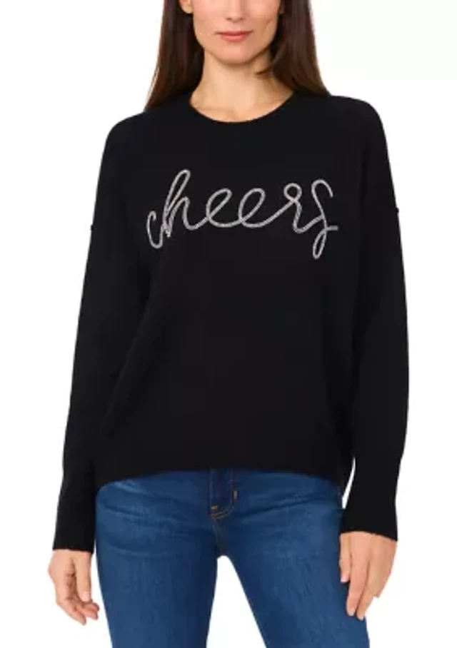 CeCe Plus Size Velvet Bow Crew Neck Long Sleeve Sweater
