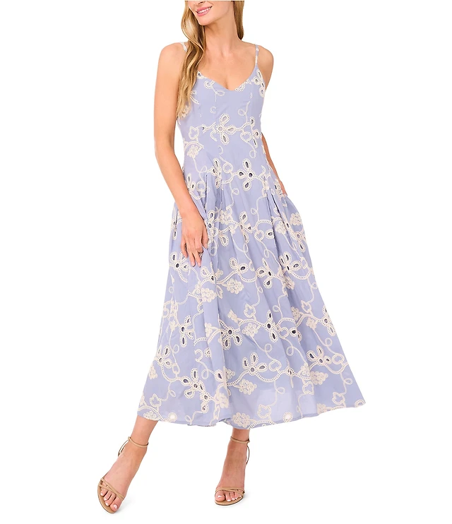 CeCe Plus Size Woven V-Neck Short Puff Sleeve Floral Embroidered Tiered A-Line Dress