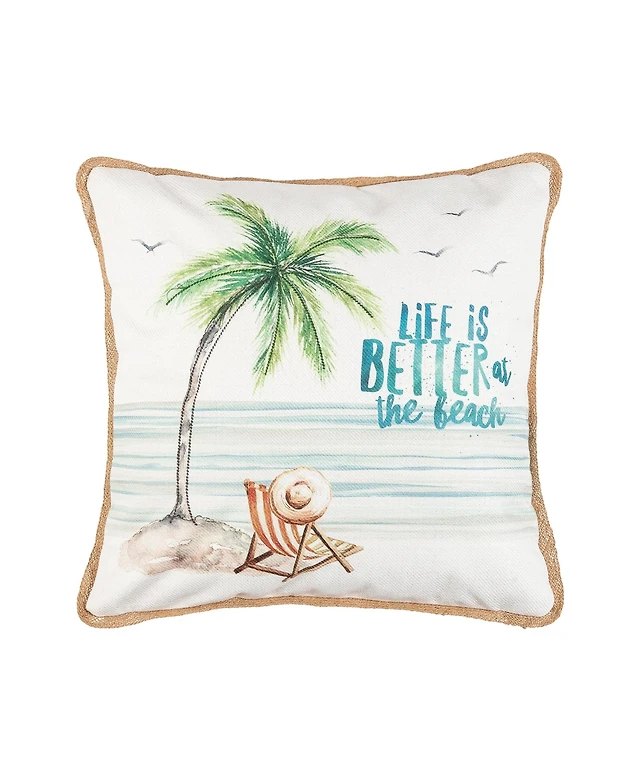 Shell Burlap Applique Throw Pillow, 18" x 18"