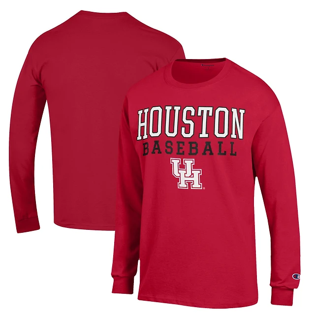 Men's Champion Red Houston Cougars Stack Baseball Long Sleeve T-Shirt