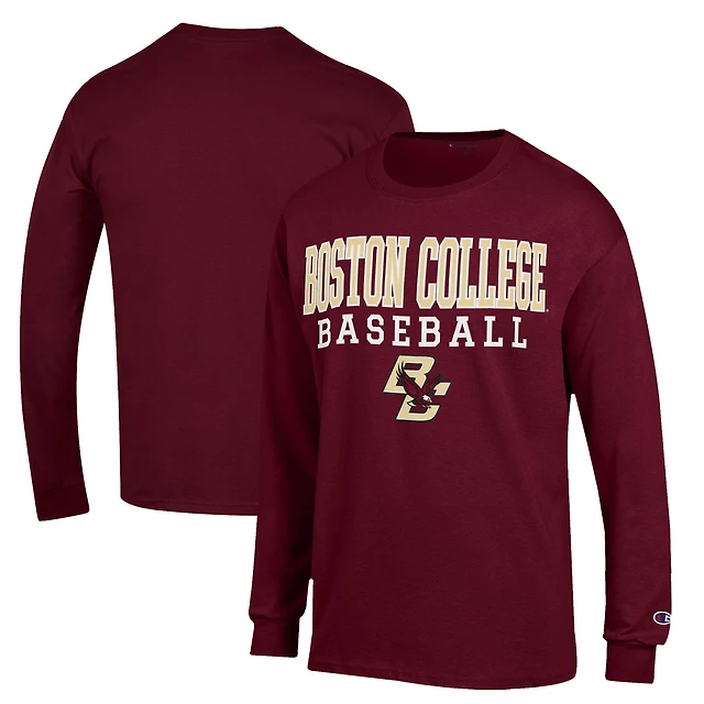 Men's Champion Maroon Boston College Eagles Stack Baseball Long Sleeve T-Shirt