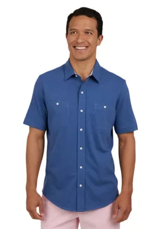 Short Sleeve Slub Button Front Shirt
