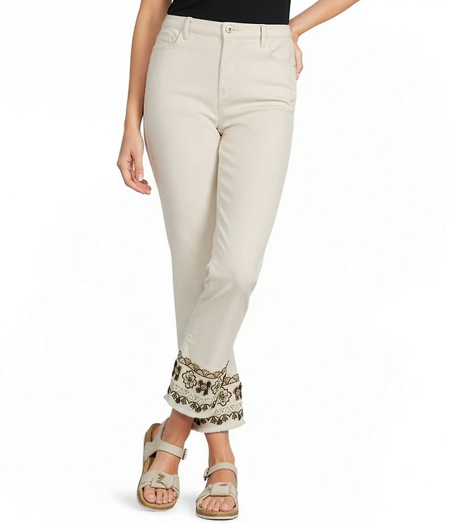 Charlie B. Stretch Twill Embroidered Cropped Pants