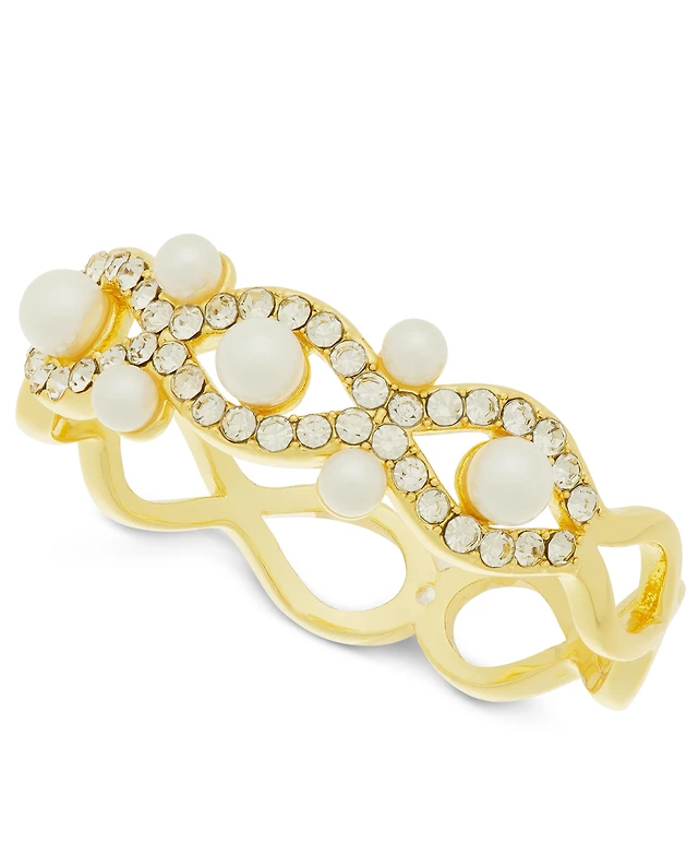 Charter Club Gold-Tone Crystal & Imitation Pearl Braid Style Ring, Exclusively at Macy's