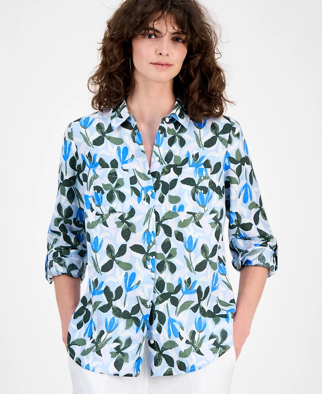 Charter Club Plus 100% Linen Floral Button-Front Shirt, Macy's Exclusive