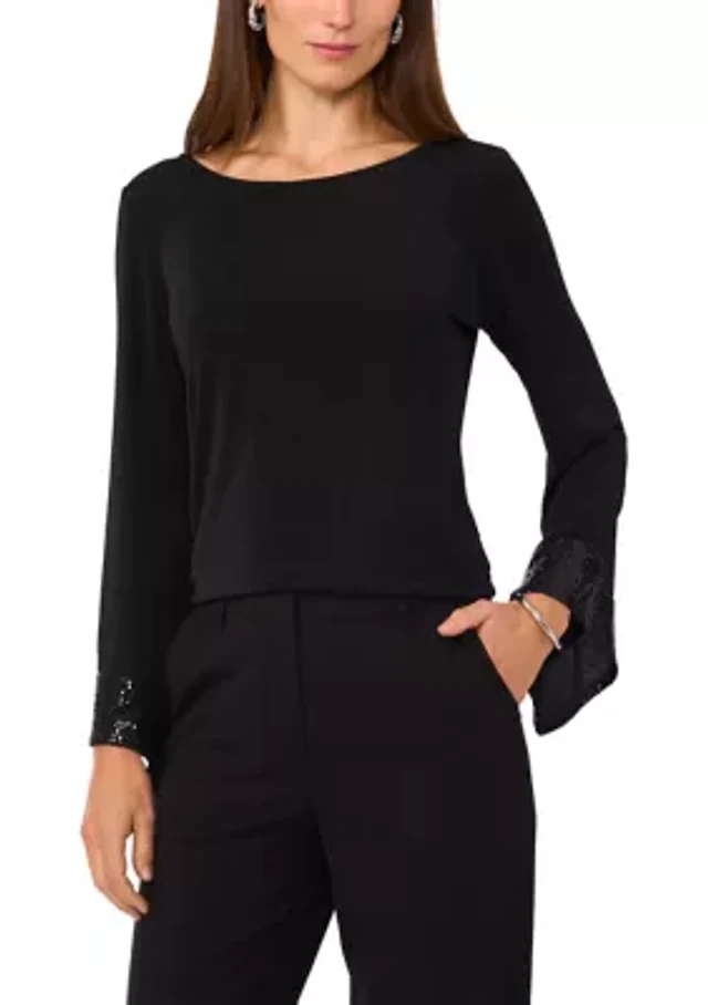 Women's 3/4 Sleeve Tie Waist Lame Top