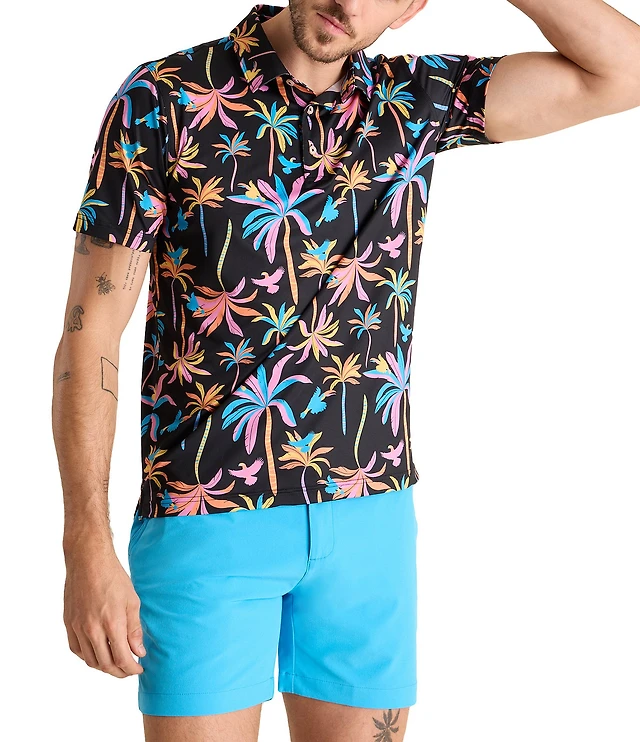 Chubbies Black Light Palm Tree Print Short Sleeve Performance Polo Shirt