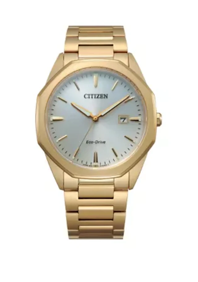 Eco-Drive Gold-Tone Stainless Steel Leather Dress Watch