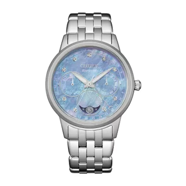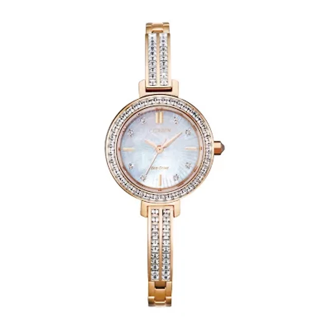 Citizen Crystal Womens Silver Tone Stainless Steel Bracelet Watch Em1020-57l