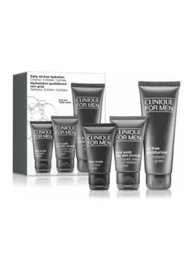 Daily Oil-Free Hydration Men's Skincare Set: Cleanse. Exfoliate. Hydrate - $53 Value!