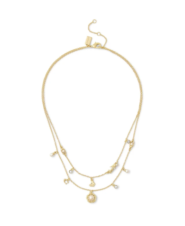 Coach Faux Stone Signature Heritage Cultivated Pearl Mixed Charm Bib Necklace