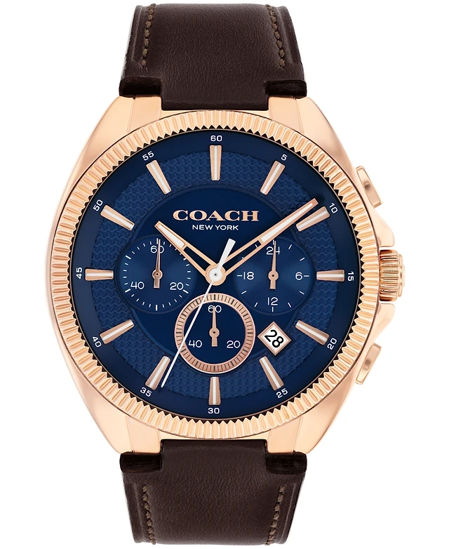 Coach Men's Jackson Dark Brown Leather Calfskin Strap Watch, 44.1mm