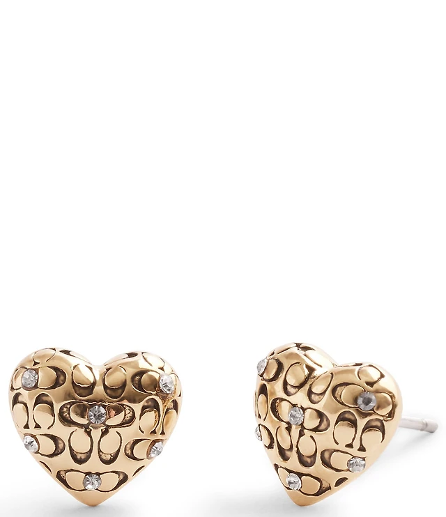 COACH Signature Logo Quilted Heart Crystal Stud Earrings