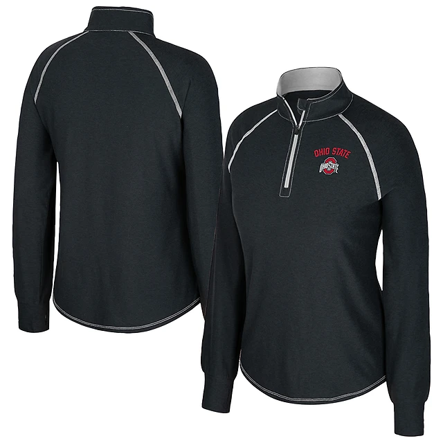 Women's Colosseum Black Ohio State Buckeyes Bikram Raglan Quarter-Zip Top