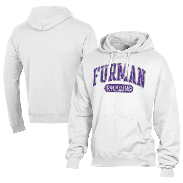 Men's Comfort Wash White Furman Paladins Lightweight Fleece Pullover Hoodie