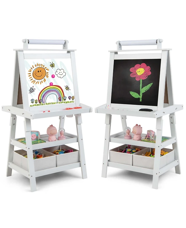 3-In-1 Kids Art Easel with Stool Magnetic Dry-Erase Board with Book Rack