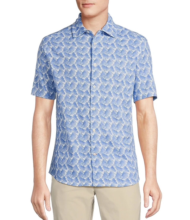 Cremieux Blue Label Geo Print Knit Oxford Short Sleeve Woven Shirt