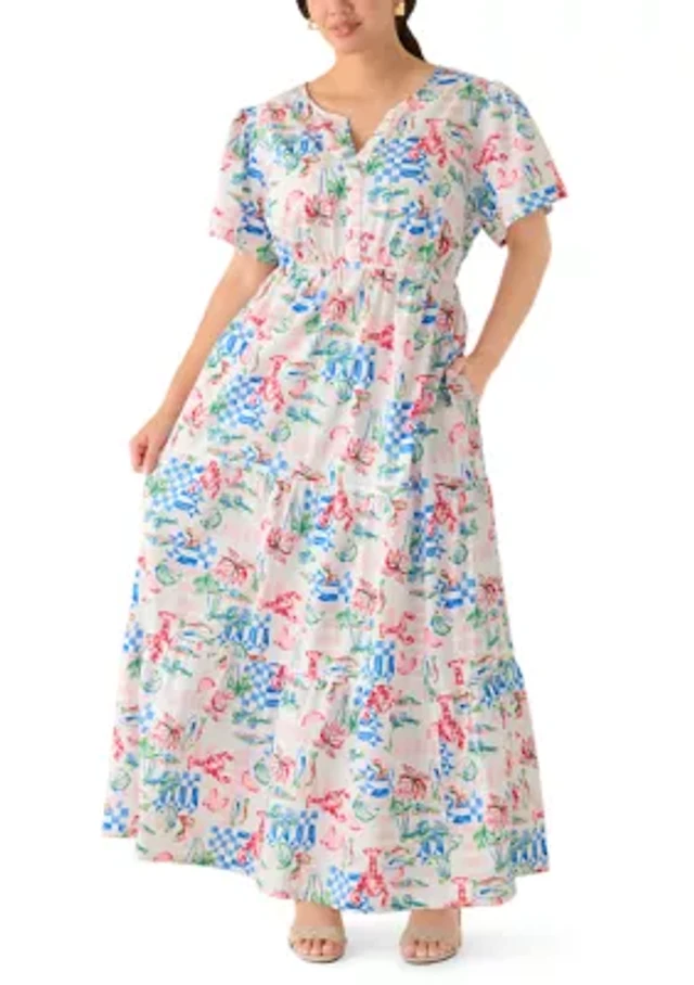 Women's Three-Quarter Sleeve Flounce Tiered Dress