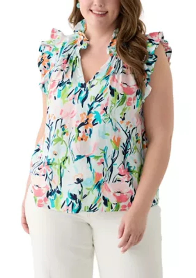 Petite Ruffle Split Neck Top