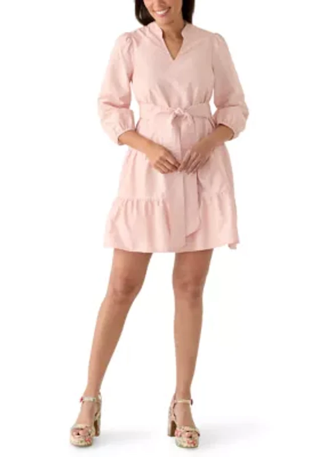 Petite Ruffle Sleeve Poplin Shirt Dress