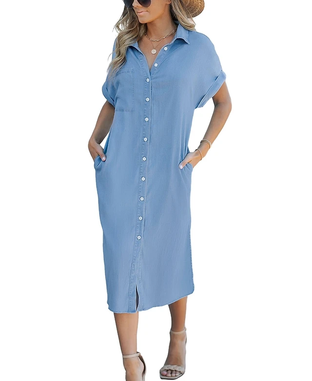 Cupshe Women's Zip Front Belted Shirt Beach Dress