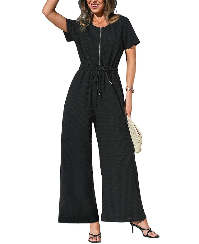 Cupshe Women's Short Sleeve Zippered Front Jumpsuit