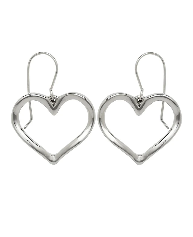 Curata Jewelry 925 Sterling Silver Large Open Heart Dangle Hook Earrings